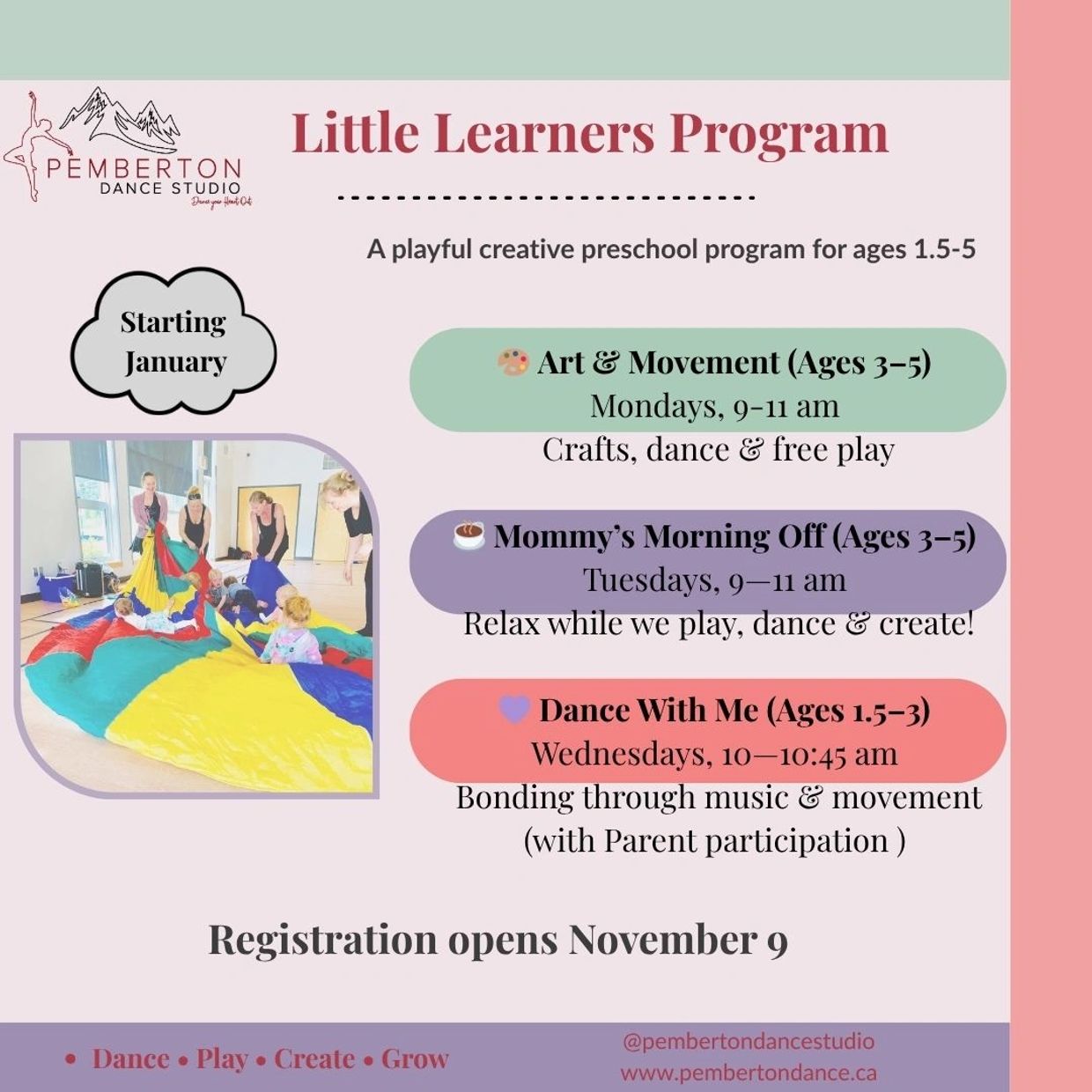 Little Learners offers a gentle, fun and nurturing space where children can explore movement, creativity, social skills and confidence — all through dance, play and art! Our small group sizes and attentive instructors engage in fun themes and foster curiosity, team work and respect.